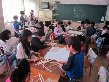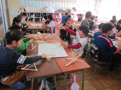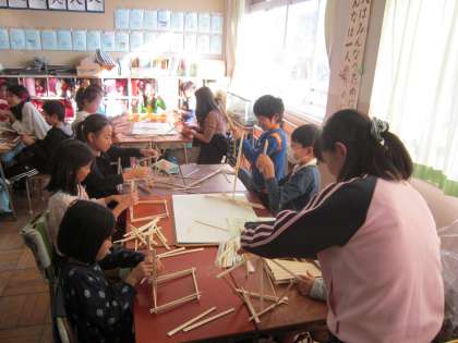 展覧会児童鑑賞日ですが、5時間目に全校児童がたてわり班で、造形遊びを楽しみました。