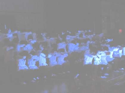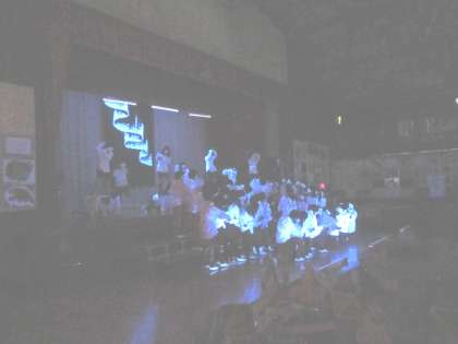 今日は、展覧会です。9:00〜5年生が体で表現の「パフォーマンス」をしました。