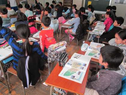 4年社会科「地図旅行をしよう」 東京都の地図を見ながら、土地の利用の仕方や公共施設などについて気付いたことを話し合っていました。