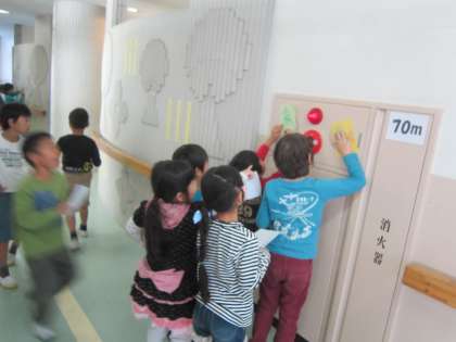 1年図画工作科「うつしてあそぼう」 色鉛筆でいろいろなところをこすって模様を写し取り、切って画用紙にはっていきます。いろいろな模様を楽しみながら学習していました。