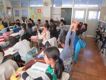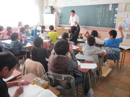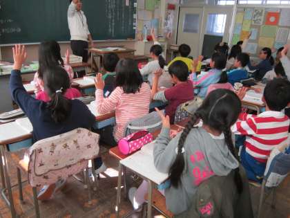 4年国語科「資料をもとに説明しよう」 説明文の書き方について、例文を見て、話し合いながら学習していました。