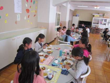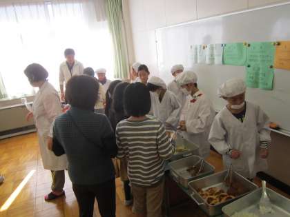 今日は、4年2組がバイキング給食でした。バランスよく主食・主菜・副菜がもらえたでしょうか。楽しそうによく食べていました。