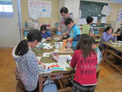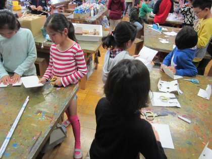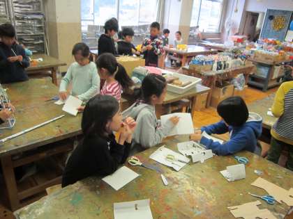 4年図画工作科「ハッピーカード」 とびだすカードを作ります。今日は、普通紙で試作を作っていました。