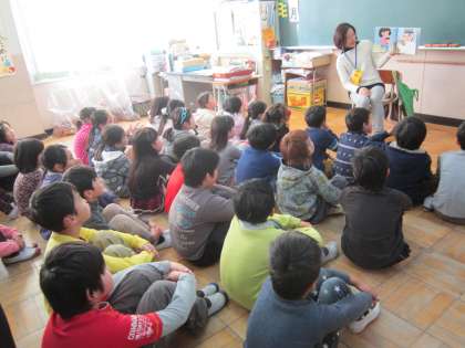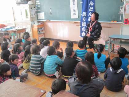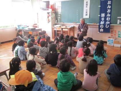 今朝は、PTA読み聞かせサークル『お話レストラン』と『とんとん昔話語り部の会』の方々が、子供たちに読み聞かせをしてくださいました。お話に聴き入っていました。