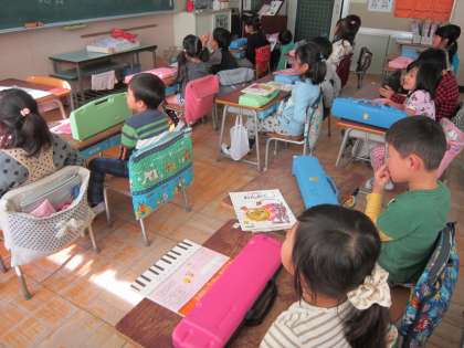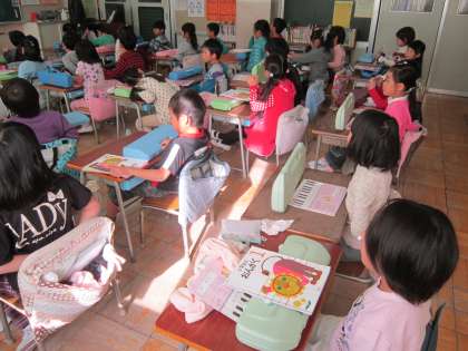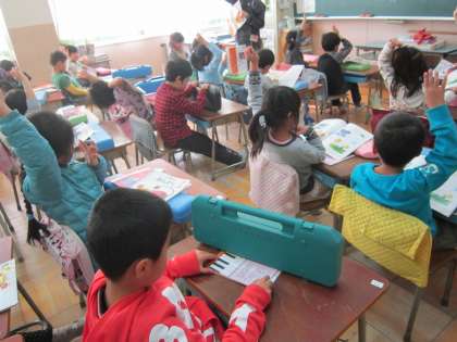 1年音楽科「はる なつ あき ふゆ」 歌詞を見ないで歌えるように、一生懸命に練習していました。