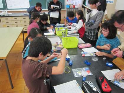 5年理科「電磁石の性質」 5時間目は、研究授業でした。長沼小学校では、理科・生活科を通して、『思考力・表現力を高める児童の育成』を研究主題にして、校内研究を進めています。今日は、乾電池の数を増やすと、電磁石は強くなるのか?を学習問題にしました。学習問題、予想、実験、結果、考察、結論の問題解決学習の流れで学習を進めました。集中して取り組み、よく話し合っていました。