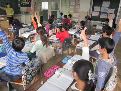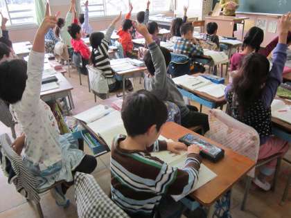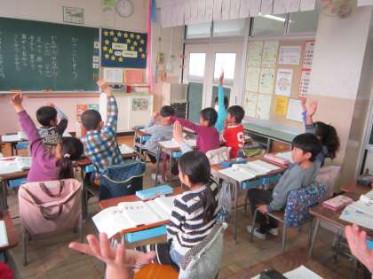 2年国語科「かさこじぞう」 物語の読み取りの授業です。読み取ったことを話し合いながら学習していました。