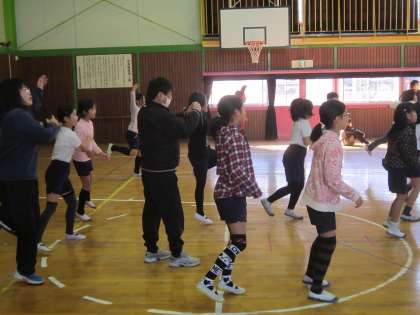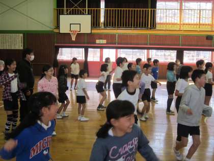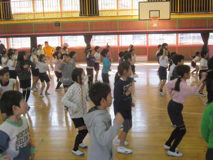 TV番組の振り付けもしているプロのダンス指導の先生に、全校の児童がダンスの指導を受けました。低学年、中学年、高学年に分かれて行いましたが、子供たちは寒さを吹き飛ばす勢いで、楽しく踊っていました。