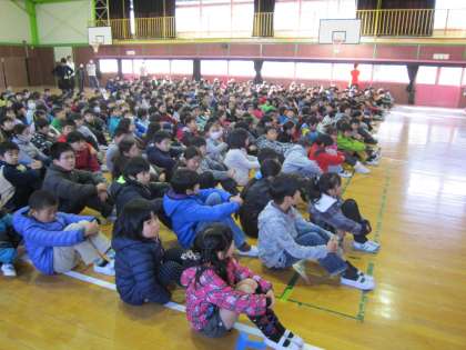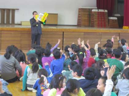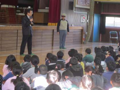 南大沢警察の方々のご協力で、学校に不審者が侵入したという想定で、避難訓練を実施しました。子供たちは教室で不審者が入れないようにバリケードを作り、不審者に教職員が対応しました。教職員にも、子供たちにもご指導いただきました。最後に『いかのおすし』のお話をいただきました。ありがとうございました。