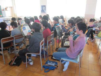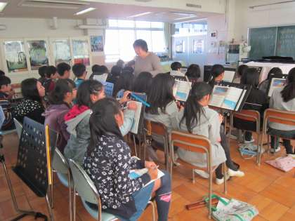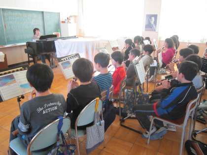6年音楽科「あおげばとうとし」 初めてのリコーダー曲に取り組んでいました。新しい記号フェルマータを教わり、リコーダーを一生懸命練習していました。