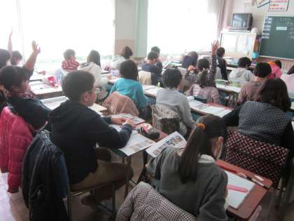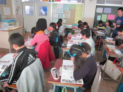 5年社会科「ニュース番組ができるまでを調べよう」 資料をもとにして、調べて話し合いながら学習していました。