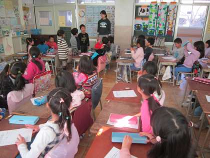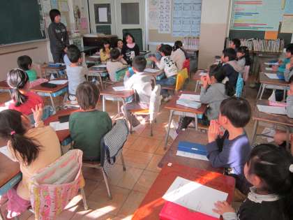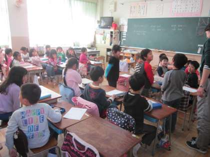 1年生活科「つくってあそぼうわくわくひろば」 学年全体でいろいろなお店屋さんを作ります。初めてテーマごとに集まって、自己紹介しました。