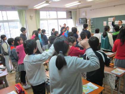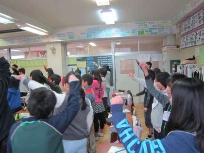 6年外国語活動「ももたろう」 ももたろうの登場人物について、英語のゲームを通じて学習していました。
