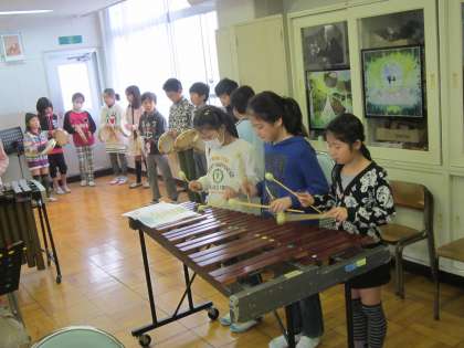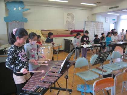 4年音楽科「冬の歌」 3学期になって初めての曲ですが、いろいろな楽器を使って上手に演奏していました。