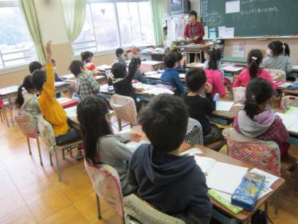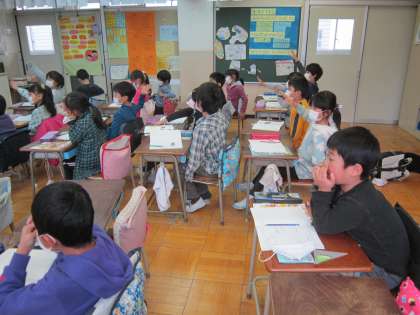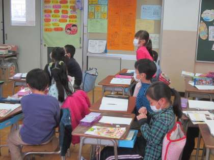 2年算数科三角形と四角形」 長方形の向かい合った辺の長さの調べ方について、話し合いながら学習していました。