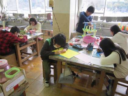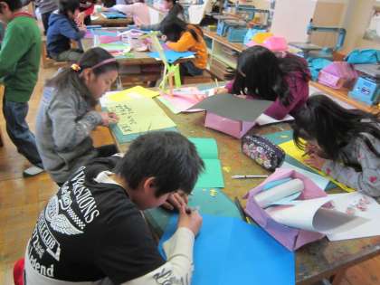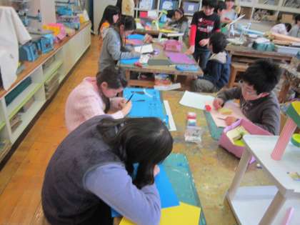 5年図画工作科「色紙づくり」 たてわり班でお世話になった6年生にプレゼントする色紙の台紙づくりをしていました。デザインを工夫して、丁寧に作っていました。