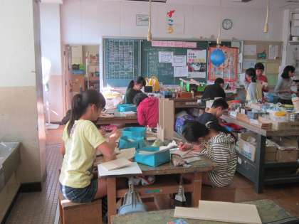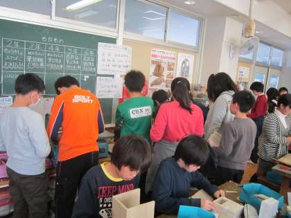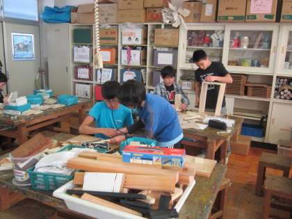 6年図画工作科「一枚の板から」 卒業に向けての大作作りも「仮組み」の作業に入りました。一生懸命に製作していました。