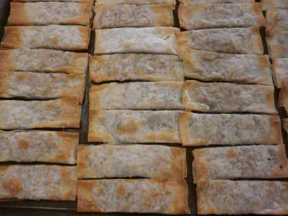 具を作り、1個1個、皮に包んでオーブンで焼きました。