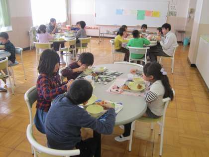 今日は、2年2組がバイキング給食でした。主食、主菜、副菜を上手に選んで、美味しく楽しくいただきました。