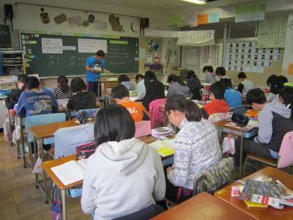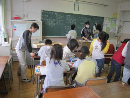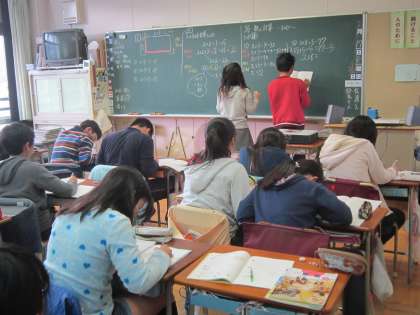 6年算数科「中学への架け橋」 2学級3展開習熟度別の授業です。有理数と無理数、数の計算など、中学進学に向けての学習に一生懸命取り組んでいました。