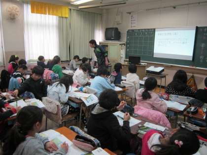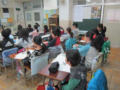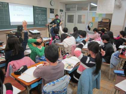 4年理科「季節と生き物」 季節によって生き物の様子が変わるのは、何が原因だろうか?植物と動物の夏と冬の様子を話し合い、気温との関係など関連付けて考えていました。