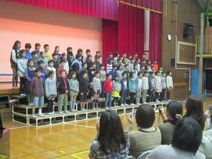5時間目に4年生が保護者の方を招いて、2分の1成人式を行いました。赤ちゃんの頃の写真と今の写真のスライドショー、得意なことを生かした発表、「未来へ」の合唱、保護者からの歌のプレゼントなど、立派に成長した姿をみせてくれました。