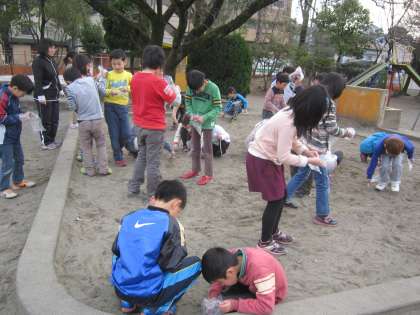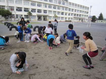 3年理科「じしゃくのふしぎを調べよう」 砂場で蹉跌集めをしました。こんなにとれたと見せてくれました。