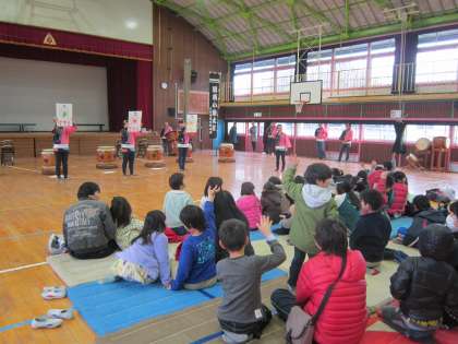 今年度最後のサタデースクールでした。関東八王子小鉄太鼓の皆さんが、来てくださいました。子供たちに太鼓の演奏を聴かせてくれたり、たたき方を教えてくれたりしました。最後に子供たちが太鼓の演奏を発表するまで指導してくださり、子供たちも喜んでいました。ありがとうございました。