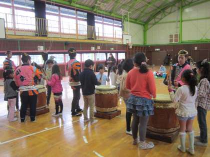 今年度最後のサタデースクールでした。関東八王子小鉄太鼓の皆さんが、来てくださいました。子供たちに太鼓の演奏を聴かせてくれたり、たたき方を教えてくれたりしました。最後に子供たちが太鼓の演奏を発表するまで指導してくださり、子供たちも喜んでいました。ありがとうございました。