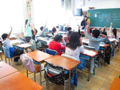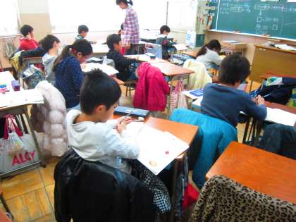 3年算数科「□を使った式」 2学級3展開習熟度別の授業です。問題文を読んで図に表し、□を使った式にして、答えを導いていました。