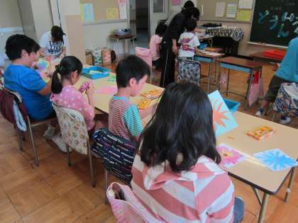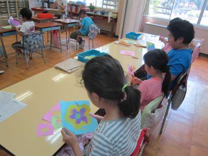 ひまわり学級図画工作科「春のまほう」 きれいな春の花をたくさん描いて、切り抜く学習に一生懸命取り組んでいました。