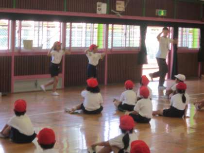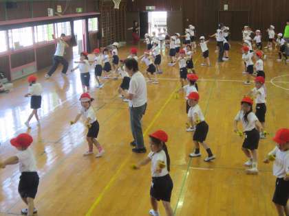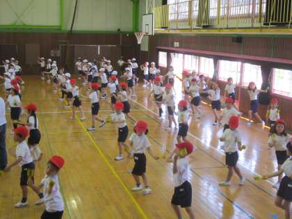 1・2年運動会の練習、リズムに合わせて一生懸命練習していました。本番が楽しみです。
