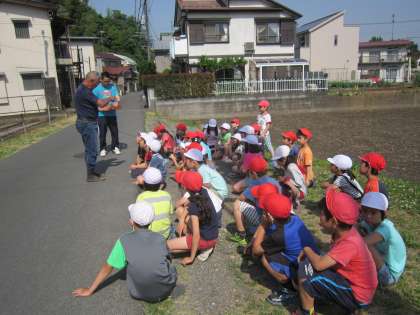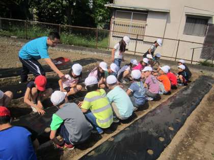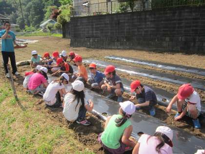 3年総合的な学習の時間「大豆を育てよう」 地域の農家の方に畑を借りて、大豆の種まきです。農家の方には、植え方も指導していただきました。ありがとうございました。