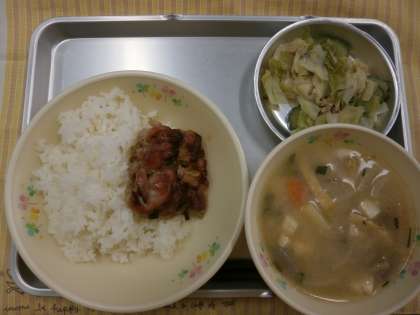 長沼小のみなさんにパワーをつけてもらおうと「スタミナ生姜焼き」を