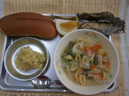 ※ スープ煮のパスタはシェルマカロニ(貝殻のかたちをしたマカロニ)を