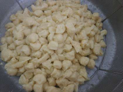 小麦粉、たまごを加えて丸めてお湯でゆであげたら、