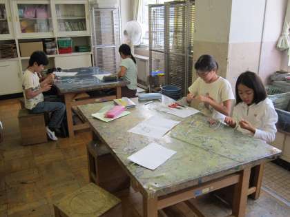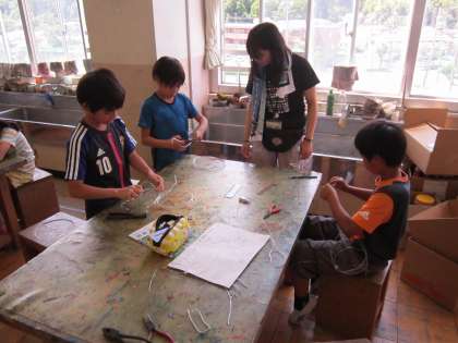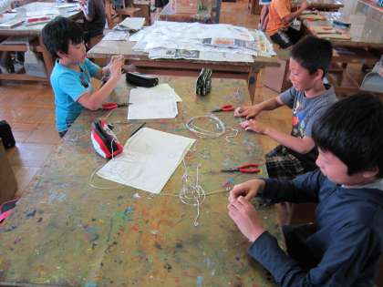 5年図画工作科「針金アートで夢の塔」 針金で骨組みを作って、夢の塔を作ります。ワークシートに下書きを描いて、工夫しながら取り組んでいました。