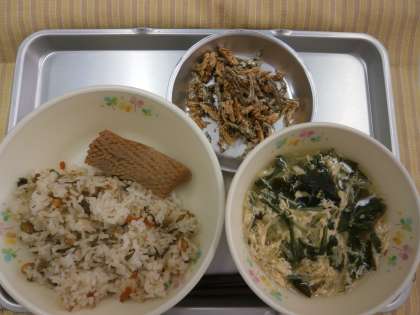 しました。かみかみ高菜ごはんには、大豆と青大豆、じゃこなどの