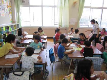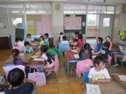 1年生活科「あさがおおおきくなったよ」 成長したあさがおを観察して、成長したあさがおのようすについて話し合い、記録しました。
