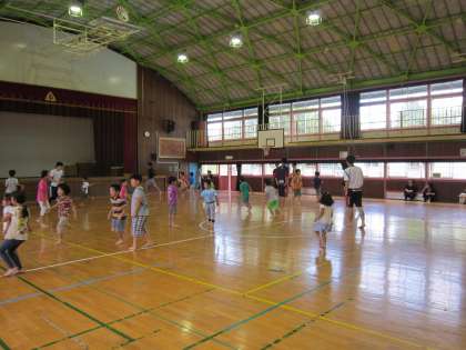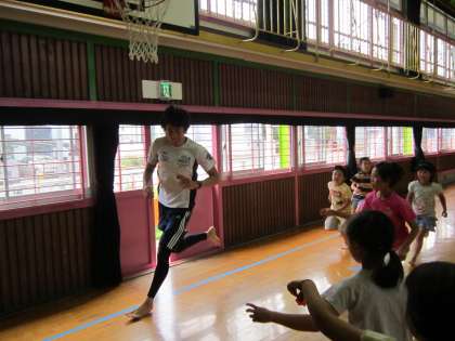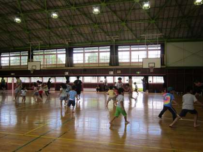 今日のサタデースクールは、『お兄さんとあそぼう』でした。校庭と体育館で大学生のお兄さんと一緒にいろいろな遊びをして楽しみました。