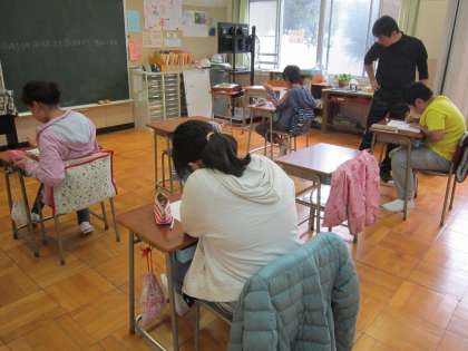 ひまわり学級算数科「小数のひき算、かけ算、さといもいくつ」 3学級どこも集中して、一生懸命学習していました。