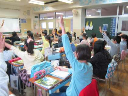 6年理科「大地のつくり」 地震や災害から連想する言葉を話し合い、地震の仕組みについての映像をみました。