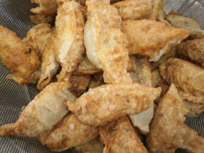 皮の大きさが15cmの円型を使いました。大きいので具を包み