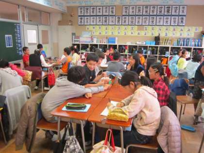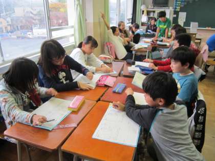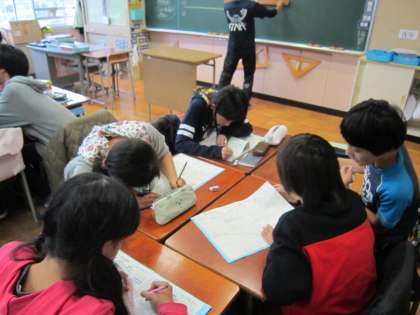 6年学級活動「縦割り班」 次の縦割り班活動の計画をグループごとに話し合っていました。