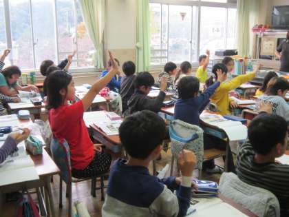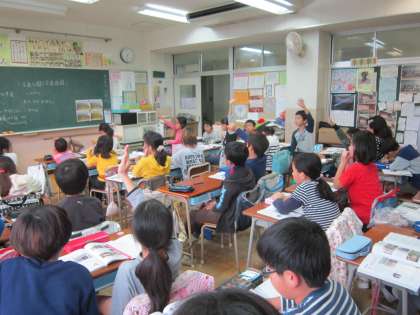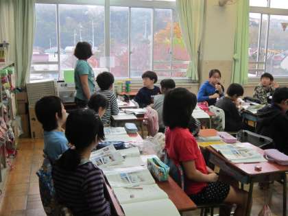 4年社会科「交通事故を防ぐ」 交通事故を防ぐための設備について、話し合いながら学習していました。