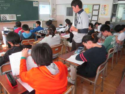 5年算数科「図形の角」 2学級3展開習熟度別の授業です。角のしあげの問題に取り組んだり、平行四辺形を変形させた形をしきつめたり、一人一人集中して学習していました。