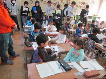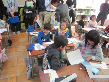 1年算数科「どっちがひろい」 5時間目は、研究授業でした。身の回りの面積を比較する学習です。直接比較したり、間接比較したりして、広さを比べました。話し合い活動もしっかりできました。