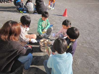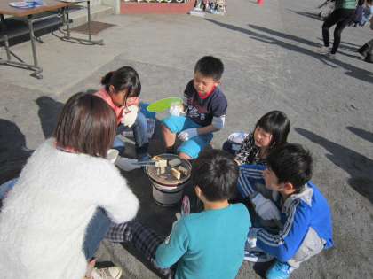 3年社会科「古い道具と昔のくらし」 今日は、昔の道具、七輪を使ってお餅を焼いて食べました。お餅があっという間に膨らんで、美味しくいただきました。