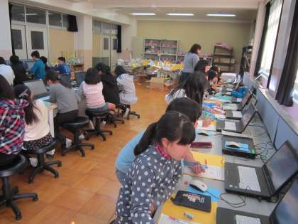 4年総合的な学習の時間「広げようやしい町」 やさしい町にするために自分ができることを決めるために、調べ学習をしていました。