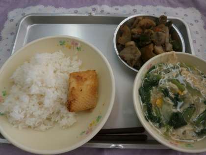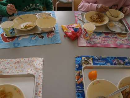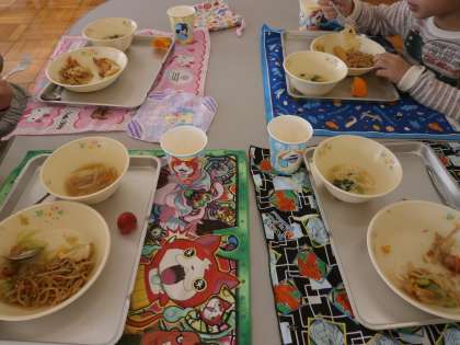 ※ 今日は1年1組さんがランチルームでバイキング給食でした。